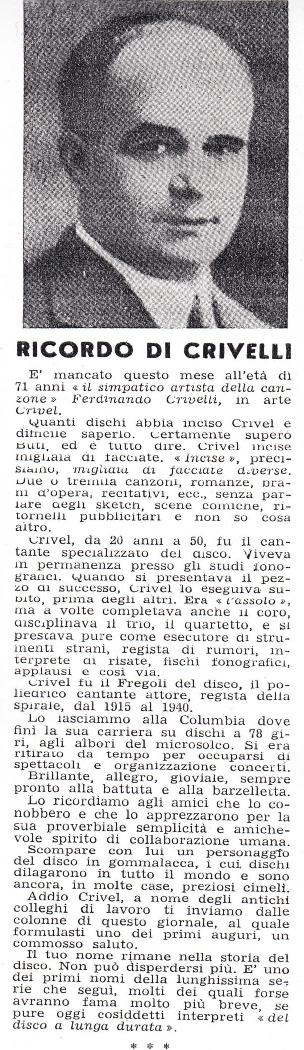 (Fernando Crivelli) Da supporto 78 giri COLUMBIA |