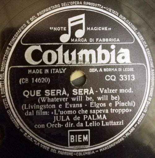 Da supporto 78 giri COLUMBIA N.Catalogo CQ 3313 N.Matrice CB 14620 incisa nell'Ottobre del 1956 e supporto 45 N.Catalogo SCMQ 1043 |