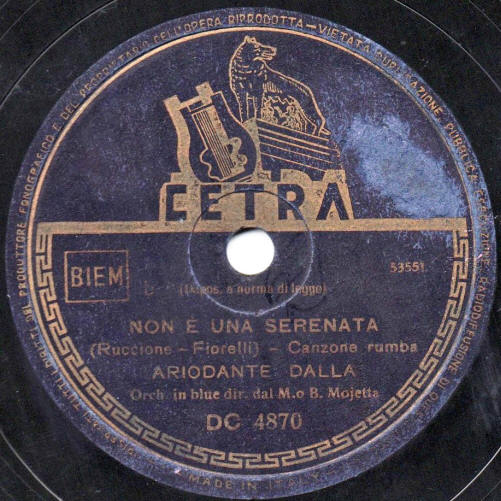 Da supporto 78 giri CETRA N.Catalogo DC 4870 N.Matrice 53551 Incisa il 15 Dicembre del 1948 |