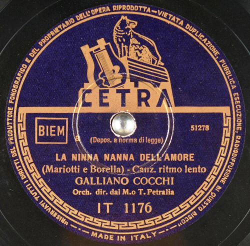 Bixio) Orchestra diretta dal M°.TITO PETRALIA Dal film omonimo Esclusivitą ENIC Da supporto 78 giri CETRA N.Catalogo IT 870 N.Matrice 50743 incisa nel Gennaio 1941