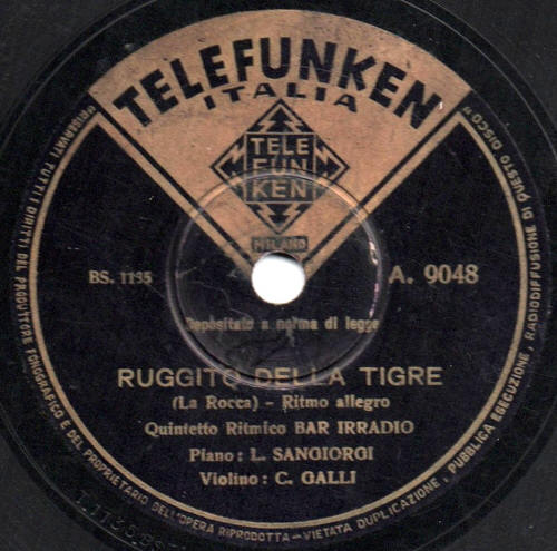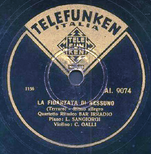 (Terraro) Quartetto ritmico: Al pianoforte LUCIANO SANGIORGI Al violino CESARE GALLI Da supporto 78 giri TELEFUNKEN N.Catalogo A 9074 N.Matrice 1156