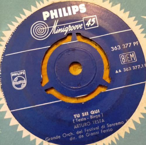 (Testa - Birga) Grande Orchestra del Festival diretta dal M°.GIANNI FERRIO Da supporto 45 giri PHILIPS N.Catalogo 363 377 PF N.Matrice AA 363 377 PF 1.A