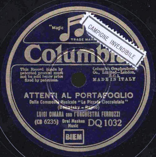 Da supporto 78 giri COLUMBIA N.Catalogo DQ 1032 N.Matrice CB 6235 Incisa nel Settembre del 1934 |
