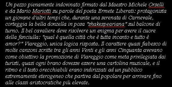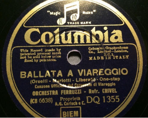 (Orselli - Mariotti - Liberati) Orchestra diretta dal M°.STEFANO FERRUZZI Canzone Ufficiale del Carnevale di Viareggio Edizioni CARISH - Milano |